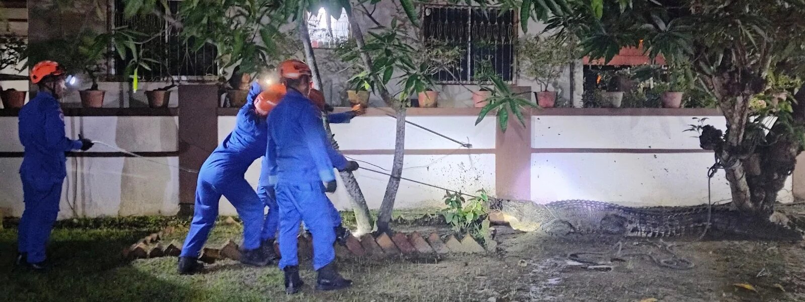 Sulaiman berkata, sepasukan anggota APM segera dikerahkan ke lokasi dan berjaya menjerut serta menutup mata buaya tersebut menggunakan tali, penyepit dan selimut keselamatan bagi mengelakkannya bertindak agresif.