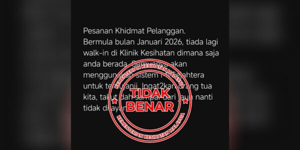 BERNAMA PUTRAJAYA: Kementerian Kesihatan Malaysia (KKM) menafikan dakwaan bahawa fasiliti Klinik Kesihatan tidak lagi menerima pesakit walk-in, atau jumpa terus, seperti yang tular di media sosial. KKM memaklumkan walaupun sistem janji temu adalah kaedah utama, ruang untuk pesakit walk-in tetap…