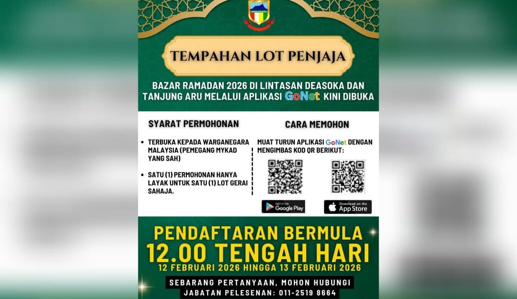 KOTA KINABALU : Dewan Bandaraya Kota Kinabalu (DBKK) mempelawa warganegara Malaysia khususnya yang berminat untuk mengemukakan permohonan lot penjaja bagi Bazar Ramadan 2026 di dua lokasi di bandar raya Kota Kinabalu.