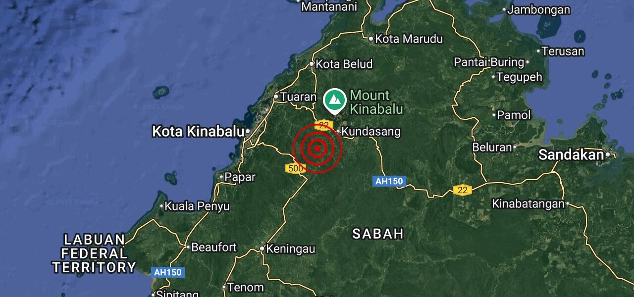 Pusat gempa bumi itu terletak di koordinat 5.9 darjah utara dan 116.5 darjah timur, kira-kira 22 kilometer di utara Tambunan, Sabah.