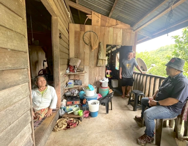 TENOM: Ahli Dewan Undangan Negeri (ADUN) Melalap, Datuk Jamawi Jaafar, turun padang meninjau sendiri keadaan rumah pemohon Rumah Mesra SMJ bagi DUN Melalap tahun ini.