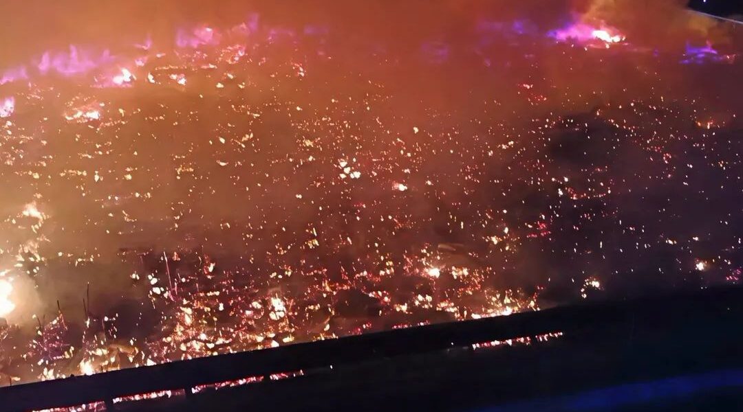 Awal pagi tadi, Kira-kira 200 rumah atas air musnah dalam kebakaran di Kampung Bahagia, Sandakan