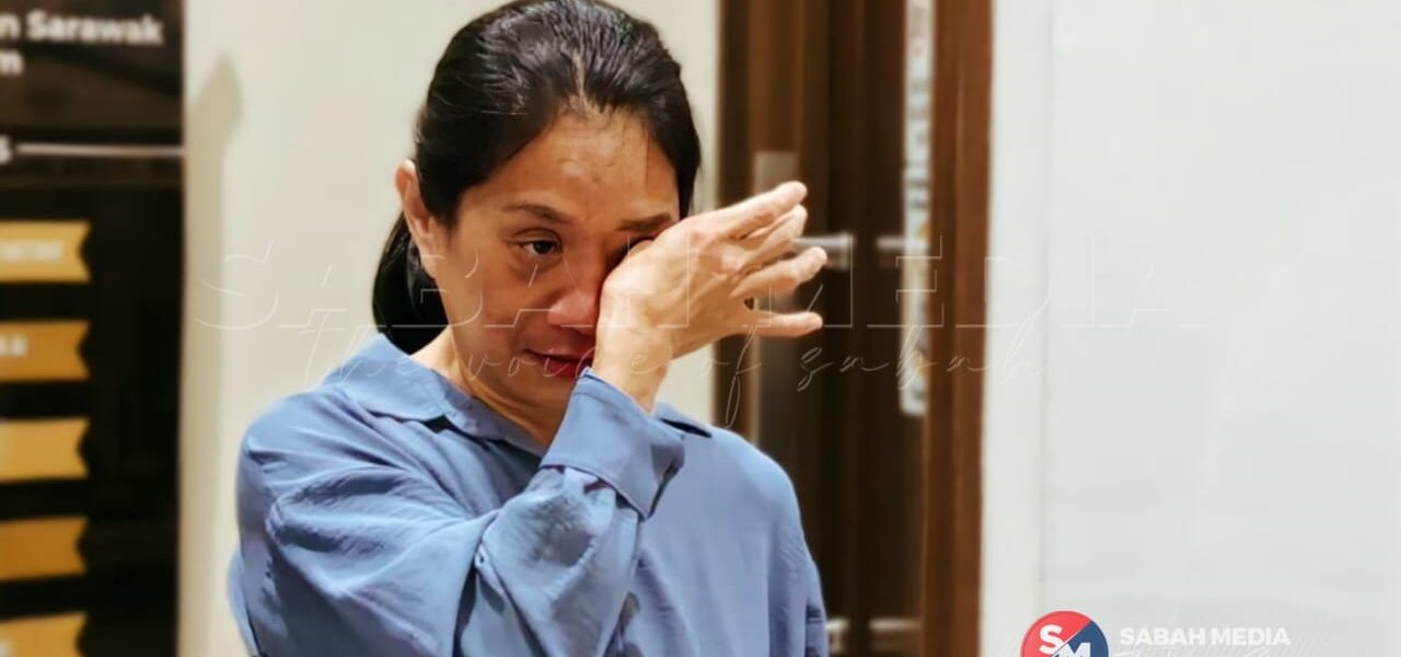 KOTA KINABALU: Seorang wanita dilihat menangis lega selepas dibebaskan oleh Mahkamah Tinggi hari ini berhubung kes jenayah terancang bernilai RM24.2 juta
