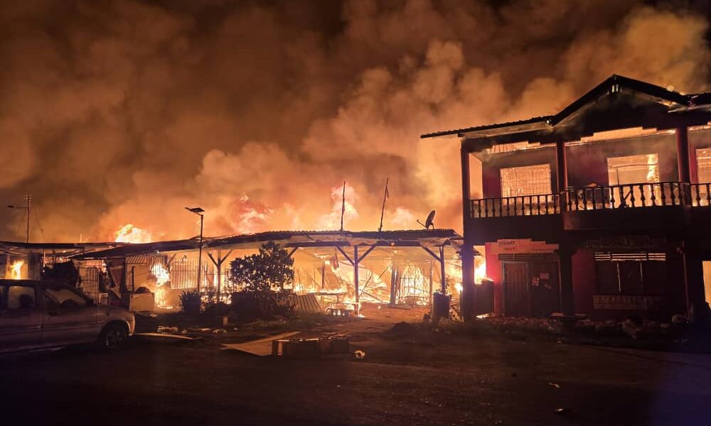 Kebakaran di perkampungan atas air Kampung Bahagia berlaku awal pagi Ahad, dan dilaporkan ia telah memusnahkan 1,000 rumah serta menjejaskan 9,007 penduduk. – BERNAMA