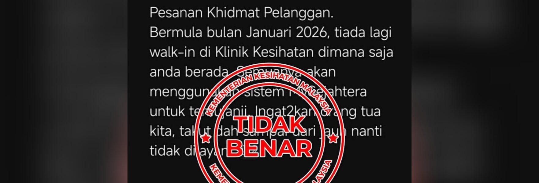 Menurut KKM, perkhidmatan walk-in tetap diteruskan bagi memastikan setiap lapisan masyarakat mendapat akses rawatan yang adil dan saksama.