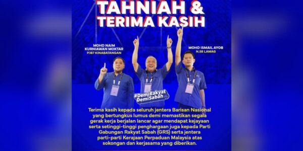 Read Time:1 Minute, 27 Second KINABATANGAN : Barisan Nasional (BN) berjaya mengekalkan kerusi Parlimen Kinabatangan dan Dewan Undangan Negeri (DUN) Lamag pada Pilihan Raya Kecil (PRK) kali ini. Setiausaha Agung UMNO, Datuk Dr Asyraf Wajdi Dusuki berkata, kejayaan itu diraih…