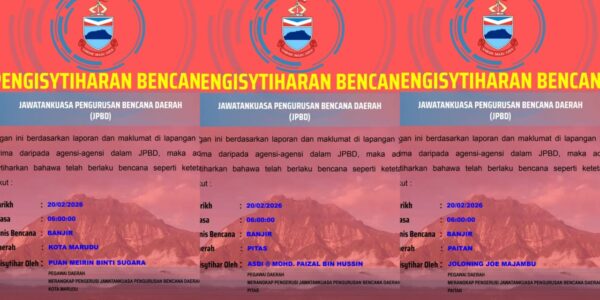 KOTA KINABALU : Tiga daerah di Sabah diisytiharkan sebagai kawasan bencana banjir berikutan hujan lebat berterusan sejak semalam selain paras air sungai berada pada tahap bahaya. Antara daerah terlibat adalah Kota Marudu; Pitas dan Paitan. Pengisytiharan itu dibuat masing-masing oleh…
