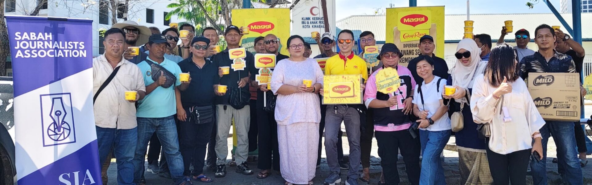 KOTA KINABALU: Persatuan Wartawan Sabah (SJA), dengan kerjasama Maggi, mengedarkan 600 pek bubur lambuk di sini hari ini sempena bulan Ramadan.